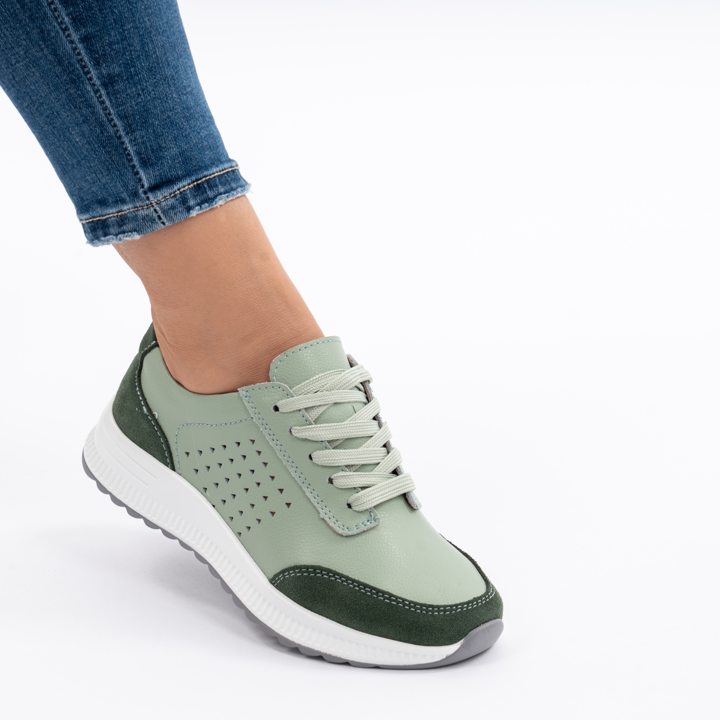 Balerini Piele Naturala Perforati Verde AN0252