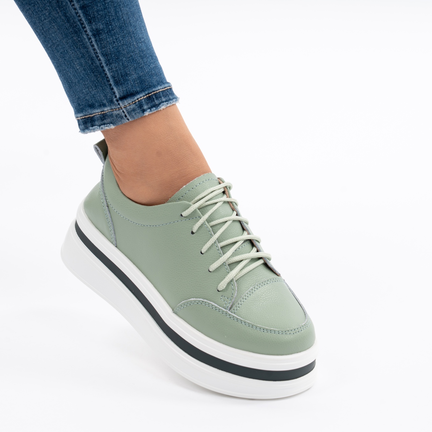 Pantofi Casual Piele Naturala Verde F001-892
