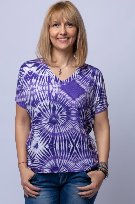 Tricou alb-mov oversize, din vascoza