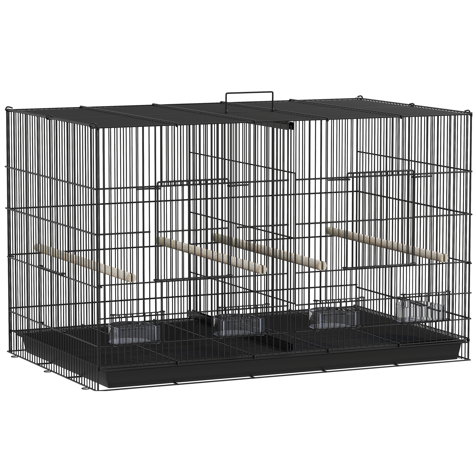 PawHut Colivie pentru Păsări cu Separator, Raft Inferior, 4 Stinghii și 4 Hrănitoare, 94x57x57 cm, Negru | Aosom Romania