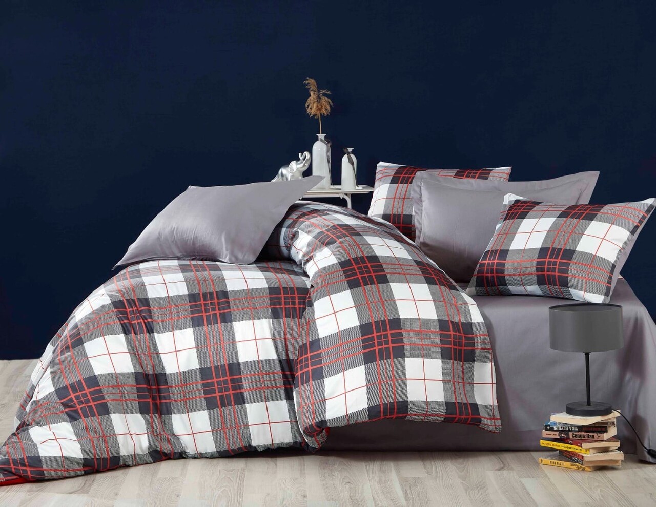 Lenjerie de pat pentru o persoana (DE), 2 piese, Lessentiel Maison, 479, Gri / Alb / Roșu