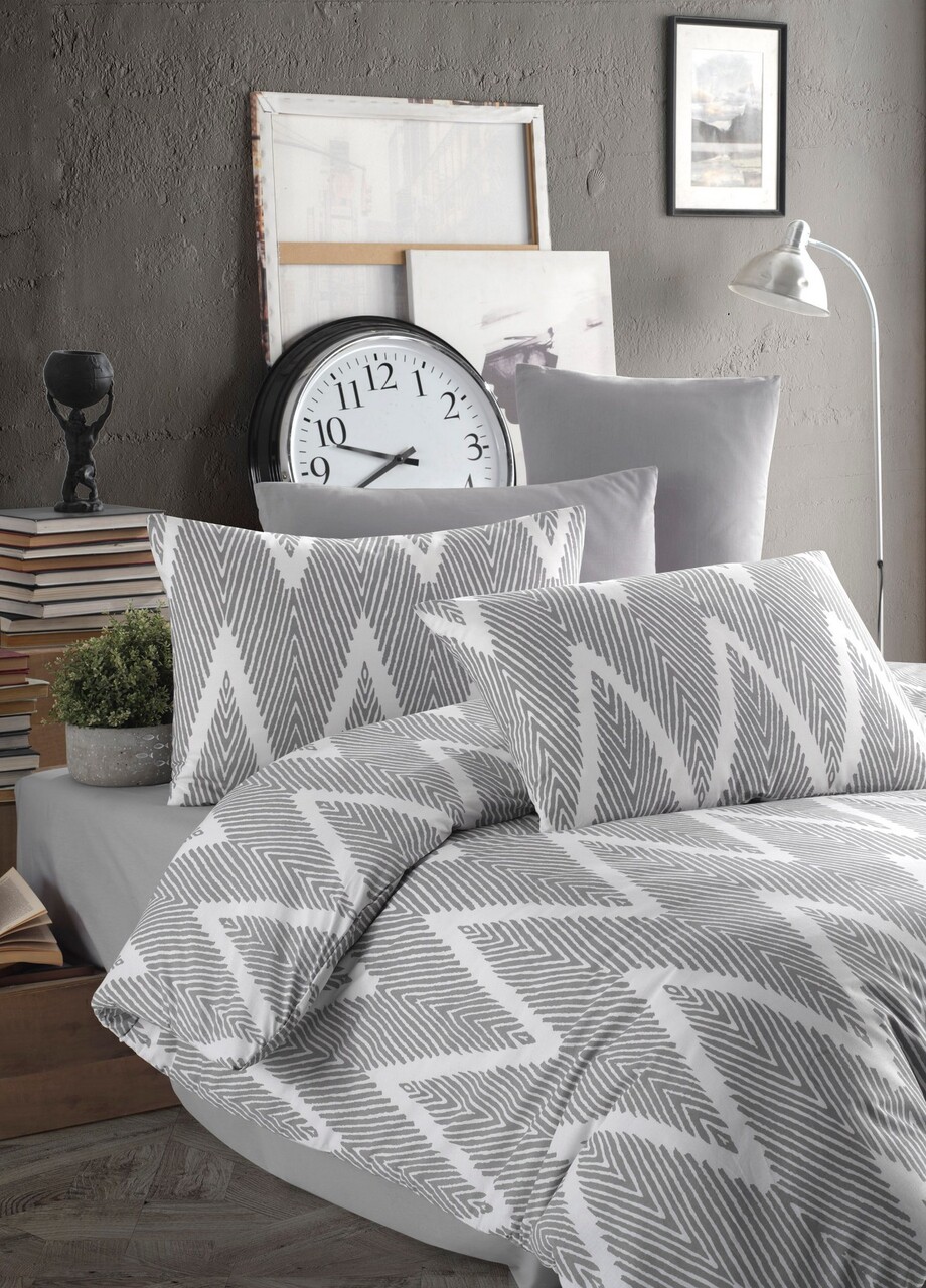 Lenjerie de pat pentru o persoana (DE), 2 piese, Lessentiel Maison, Üçgen, Gri/Alb