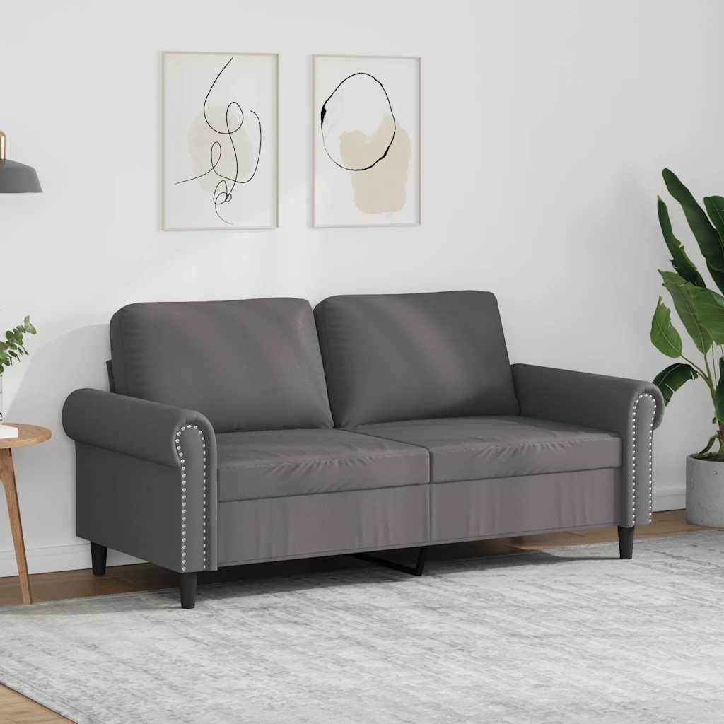 vidaXL Canapea cu 2 locuri, gri, 140 cm, piele ecologică
