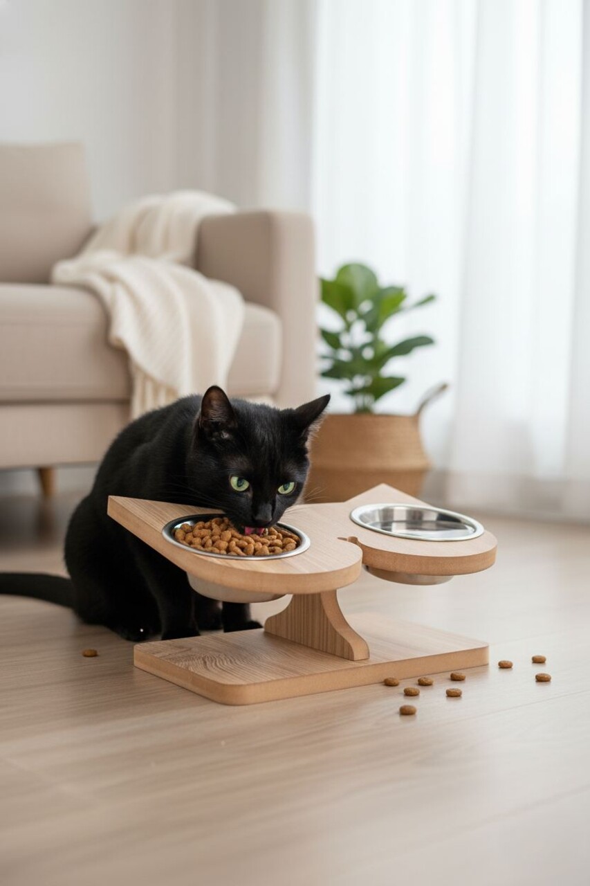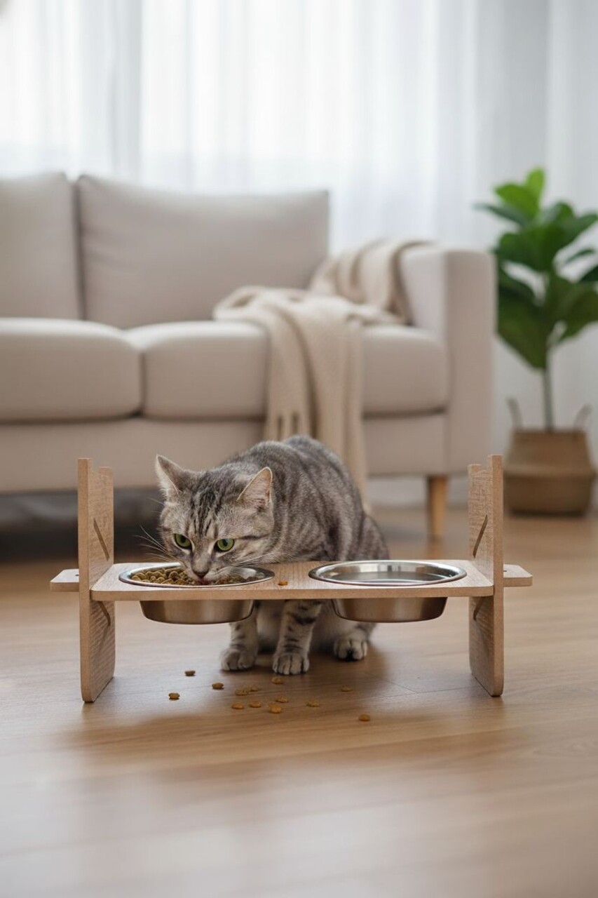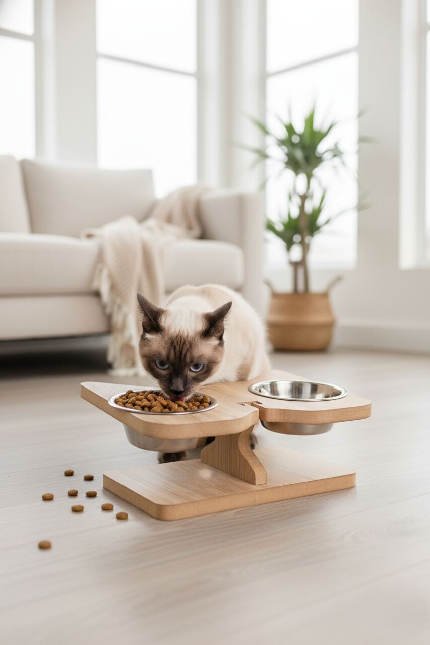 Bol pentru hrana animale de companie, Paws & Whiskers, Tori, 100% MDF (Grosime: 1,8 mm), Lemn