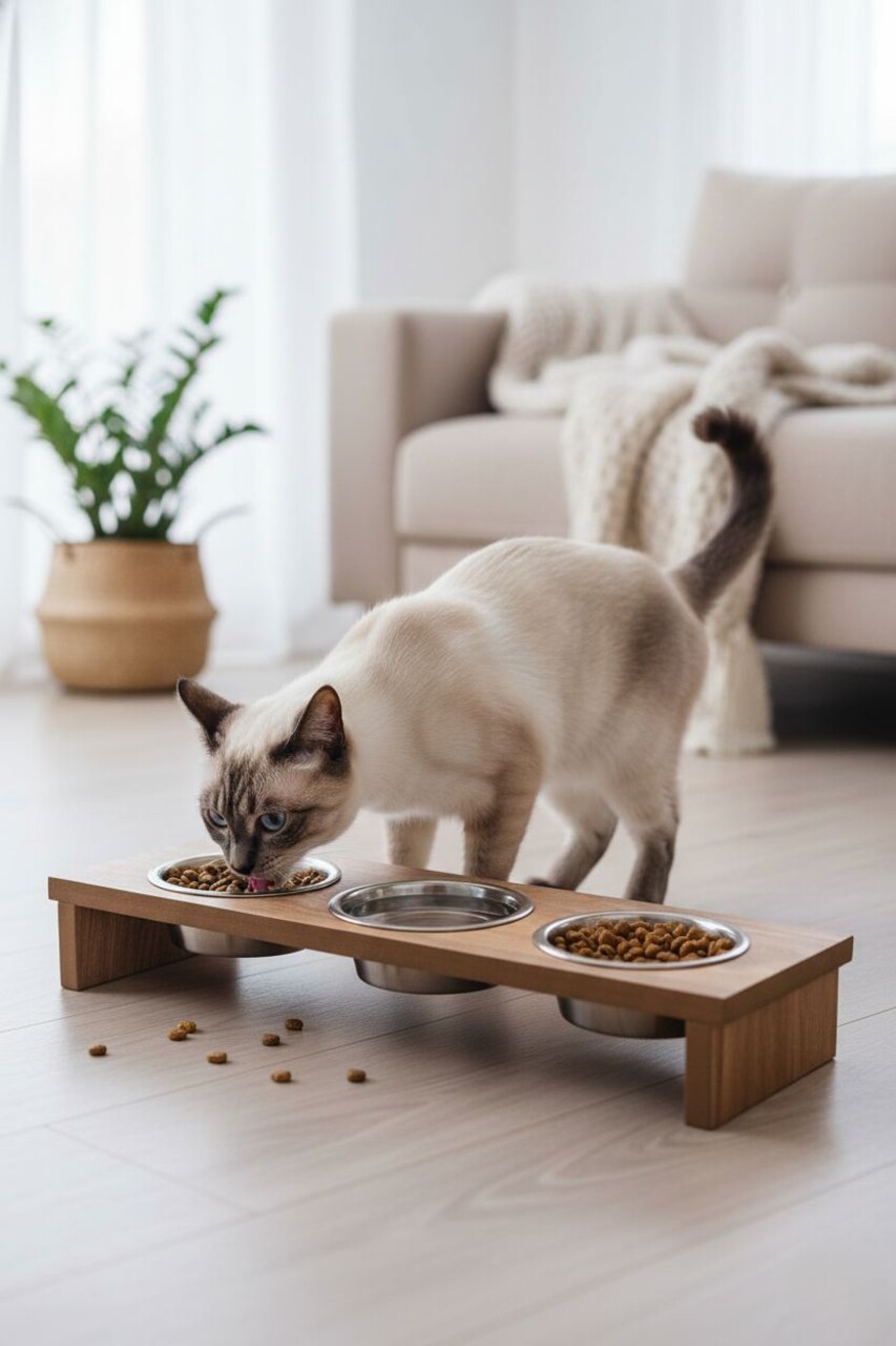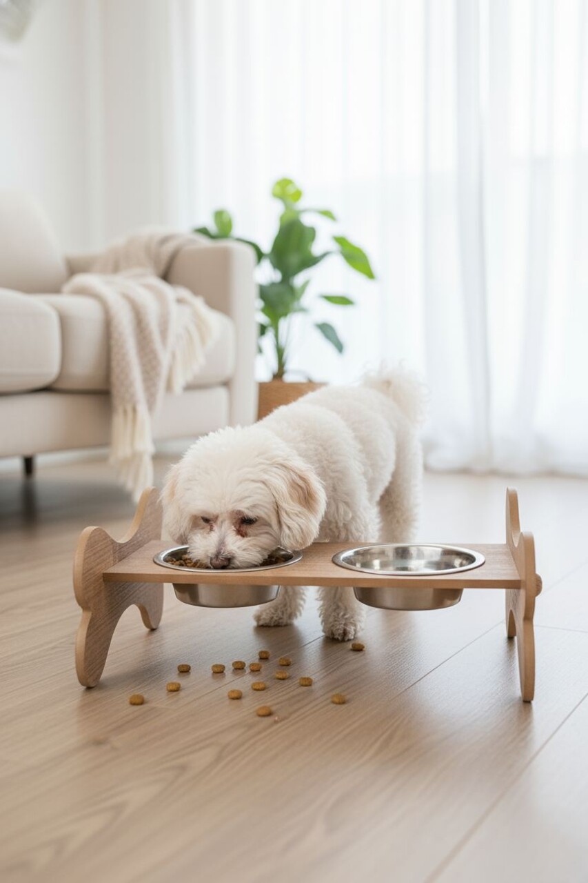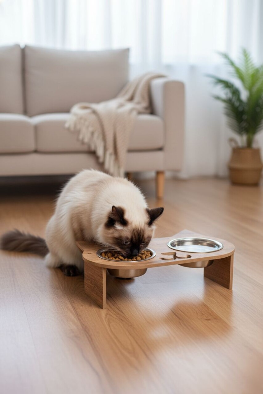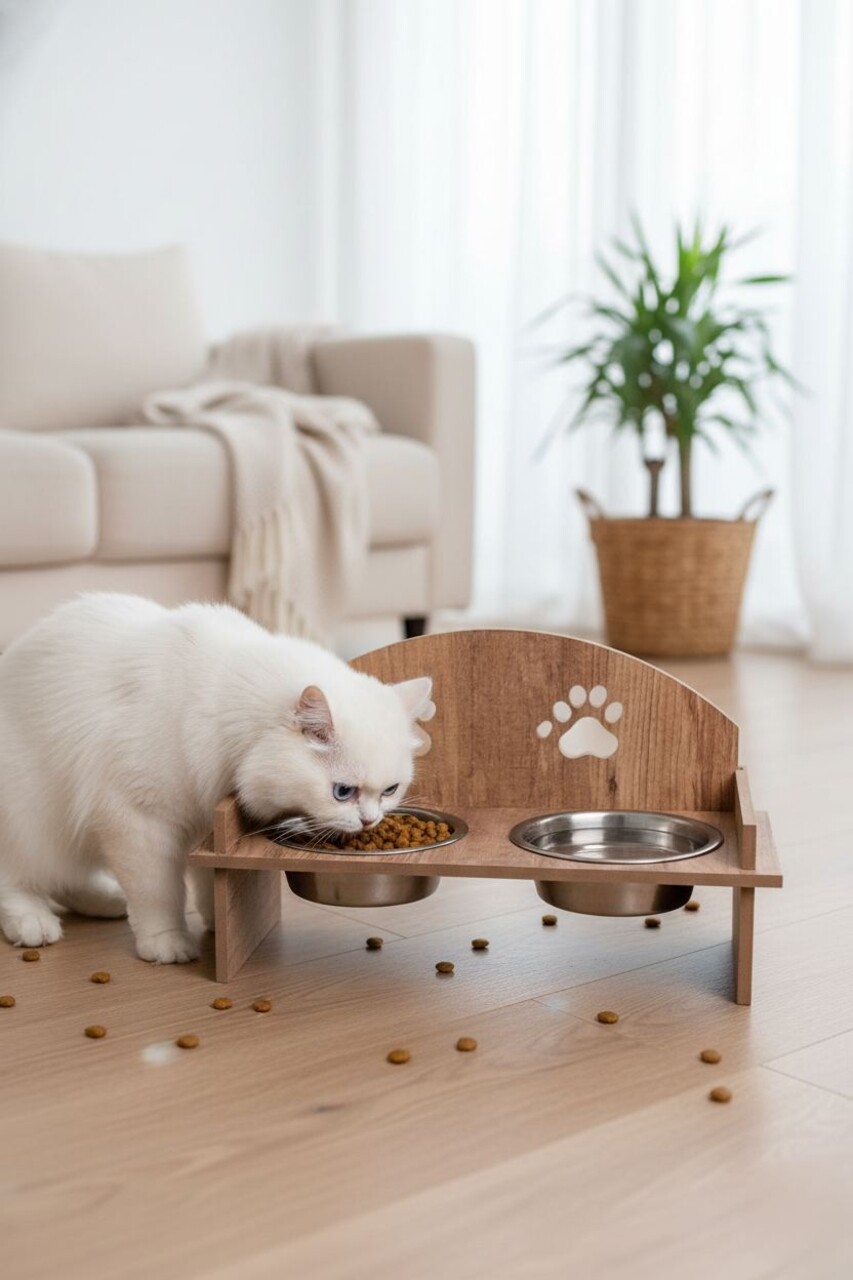 Bol pentru hrana animale de companie, Paws & Whiskers, Tori, 100% MDF (Grosime: 1,8 mm), Lemn