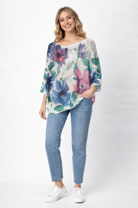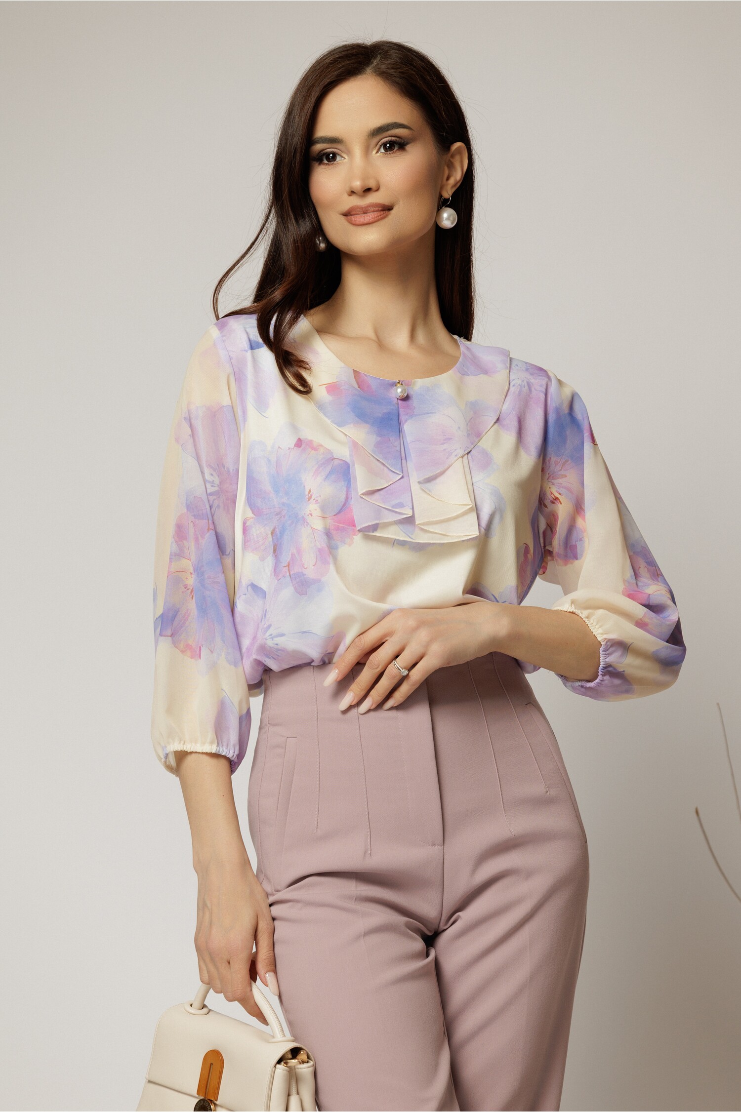 Bluza cu imprimeu floral - Alb murdar/Roz