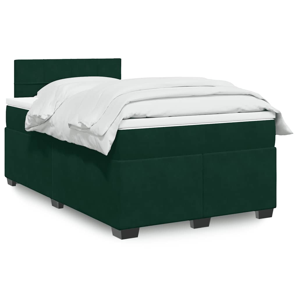 vidaXL Pat box spring cu saltea, verde închis, 120x190 cm, catifea