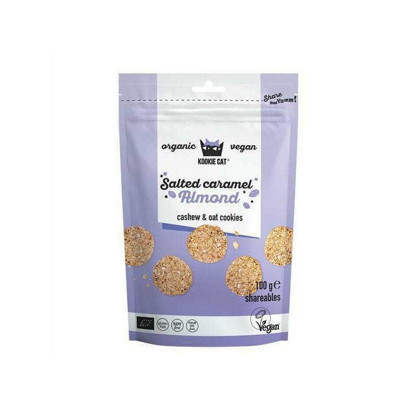 Cookie cu migdale si caramel sarat bio 100g Kookie Cat