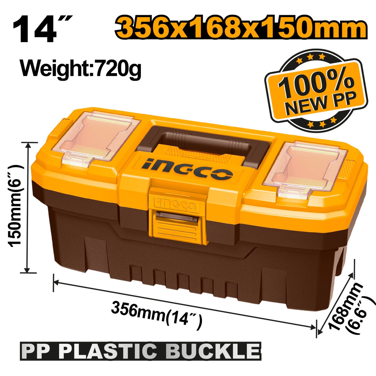 Cutie Depozitare Scule 14 356x168x150mm Plastic PP INGCO PBX1401, capacitate 10kg, tava interioara, compartimente superioare, maner rezistent