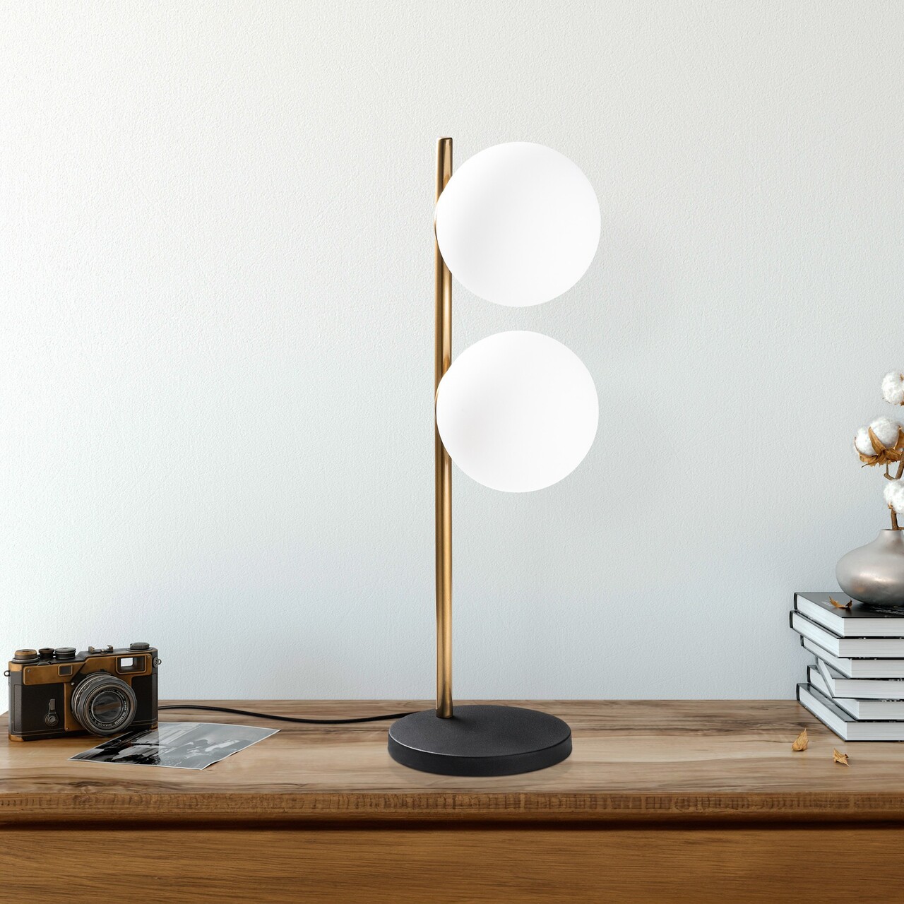 Lampa de masa, Opviq, 390FLH2252, Negru / Alb / Auriu