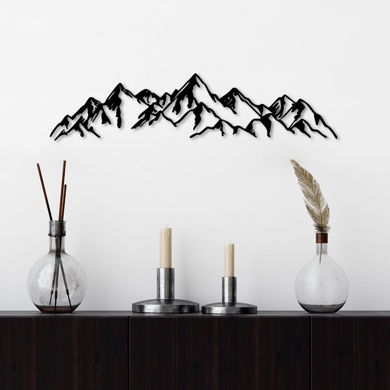 Decoratiune de perete, Mountain, Dimensiune: 54 x 14 cm, Negru