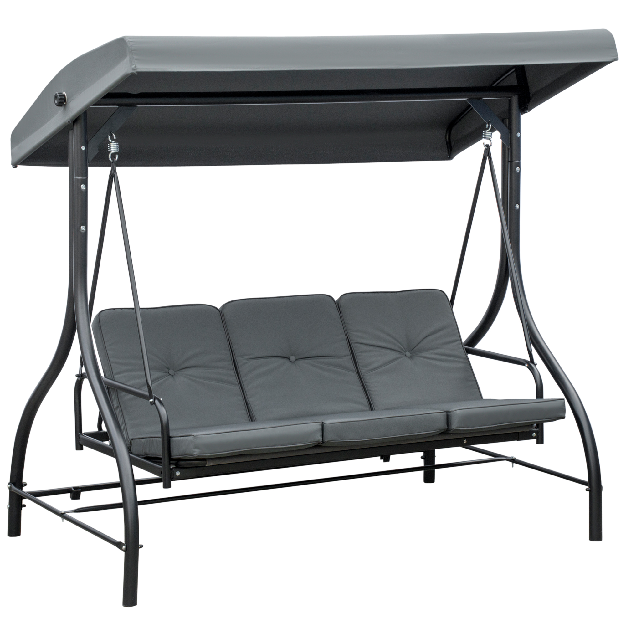 Outsunny Balansoar de Gradina 3 Locuri Convertibil in Pat cu Copertina Reglabila, Balansoar de Terasa din Metal si Tesut, Gri Inchis | Aosom Romania