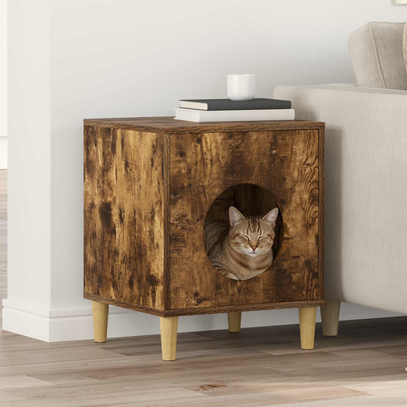vidaXL Casa pentru pisici Stejar fumuriu 42,5 x 40 x 53 cm