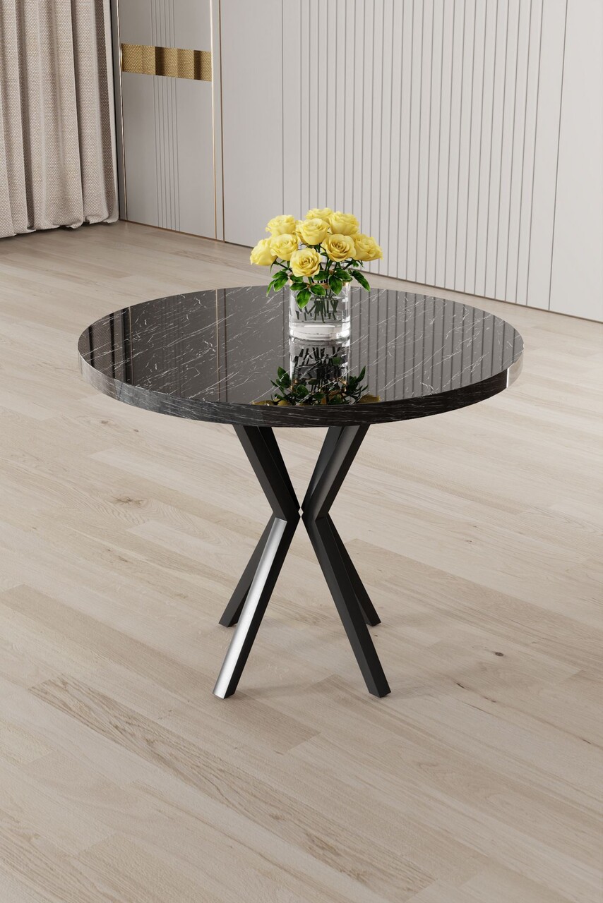 Masa, Hanah Home, Agnes, 90x73x90 cm, Marmură neagră / Negru