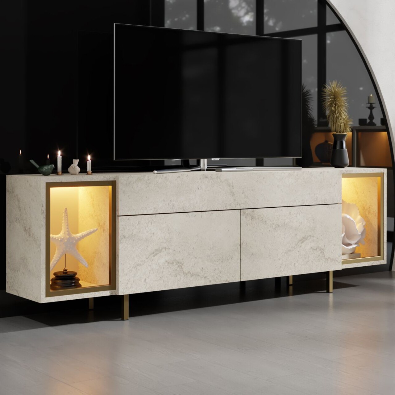 Comoda TV, Hanah Home, Zenith, 180x55x32 cm, Travertin / Auriu