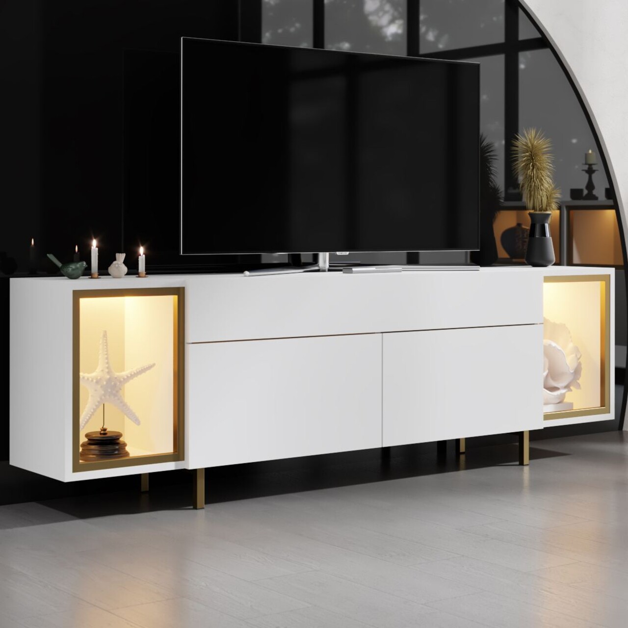 Comoda TV, Hanah Home, Zenith, 180x55x32 cm, Alb/Auriu