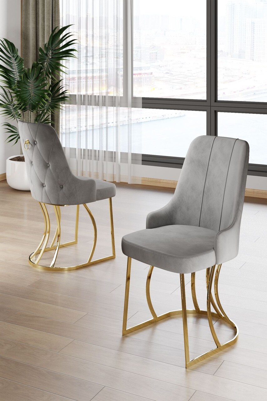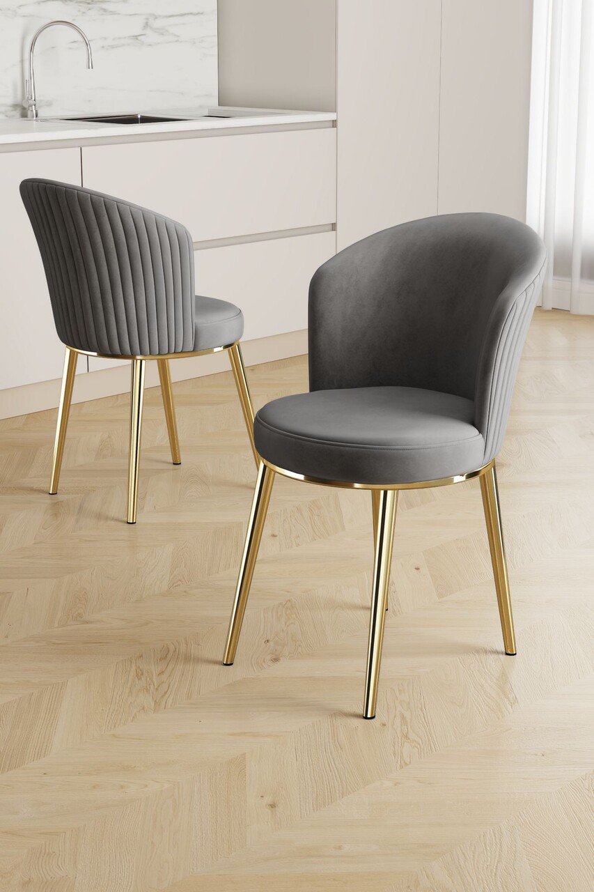 Set scaune 4 piese, Hanah Home, Puva, Gri / Auriu