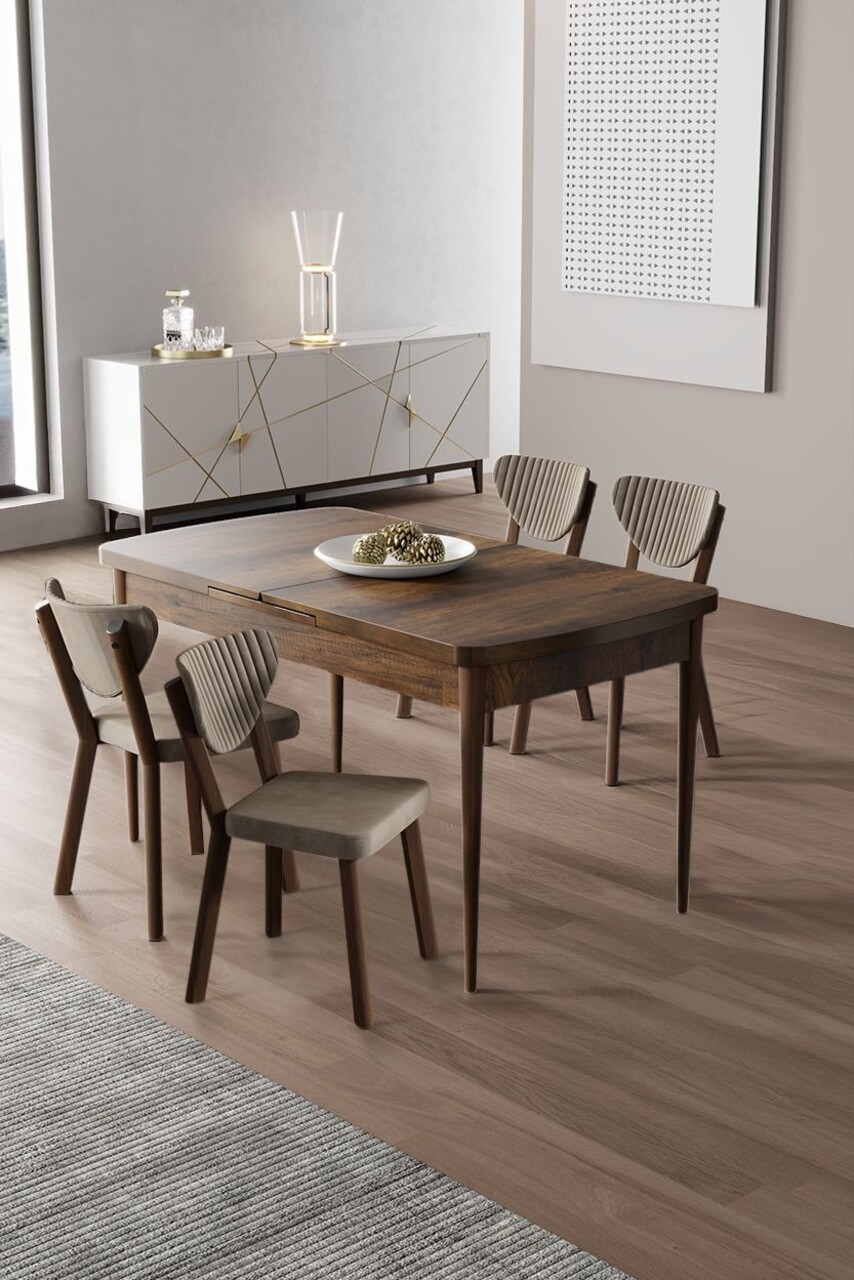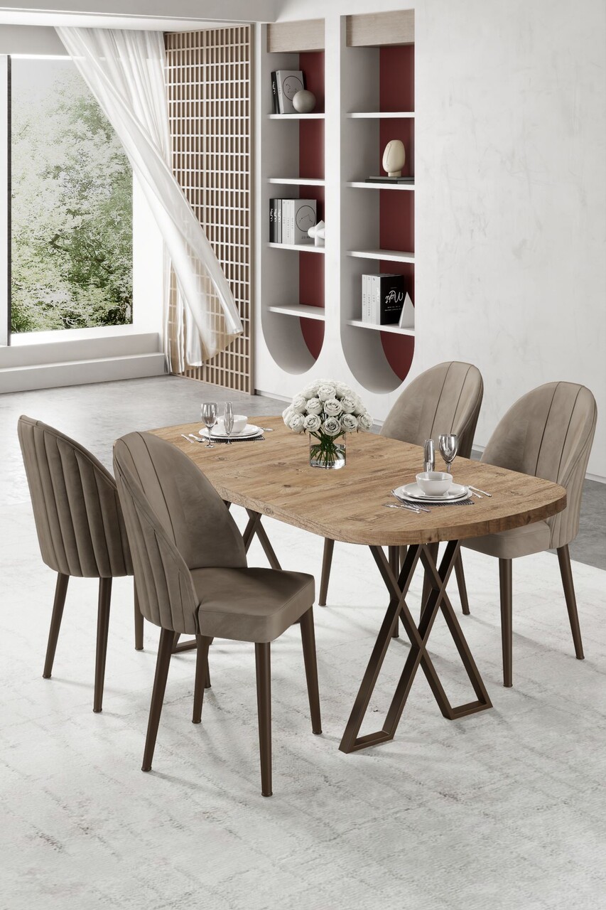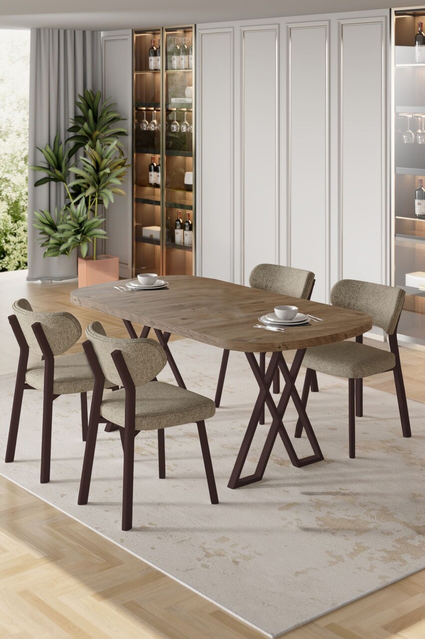 Set masă și scaune (5 bucăți), Hanah Home, Akort, Travertin / Cappuccino