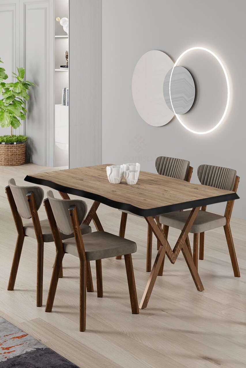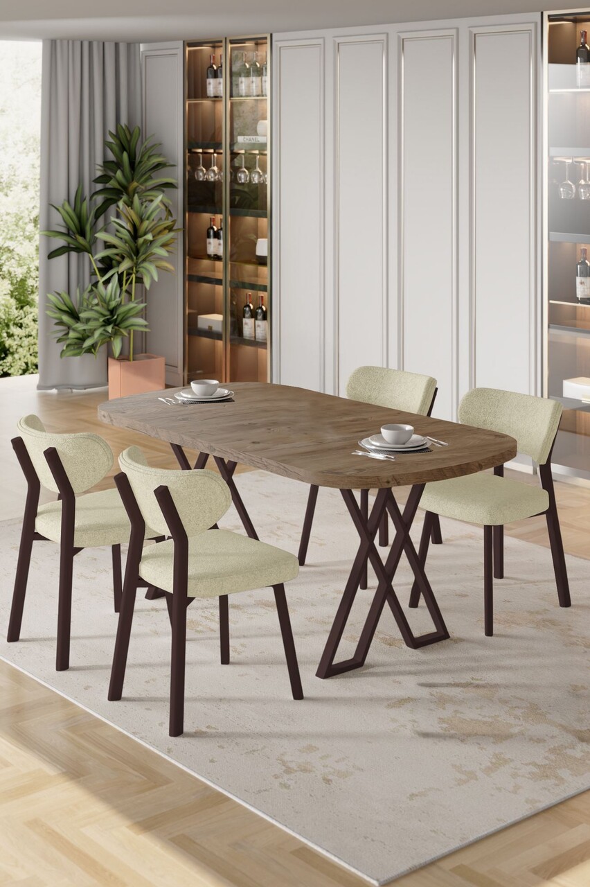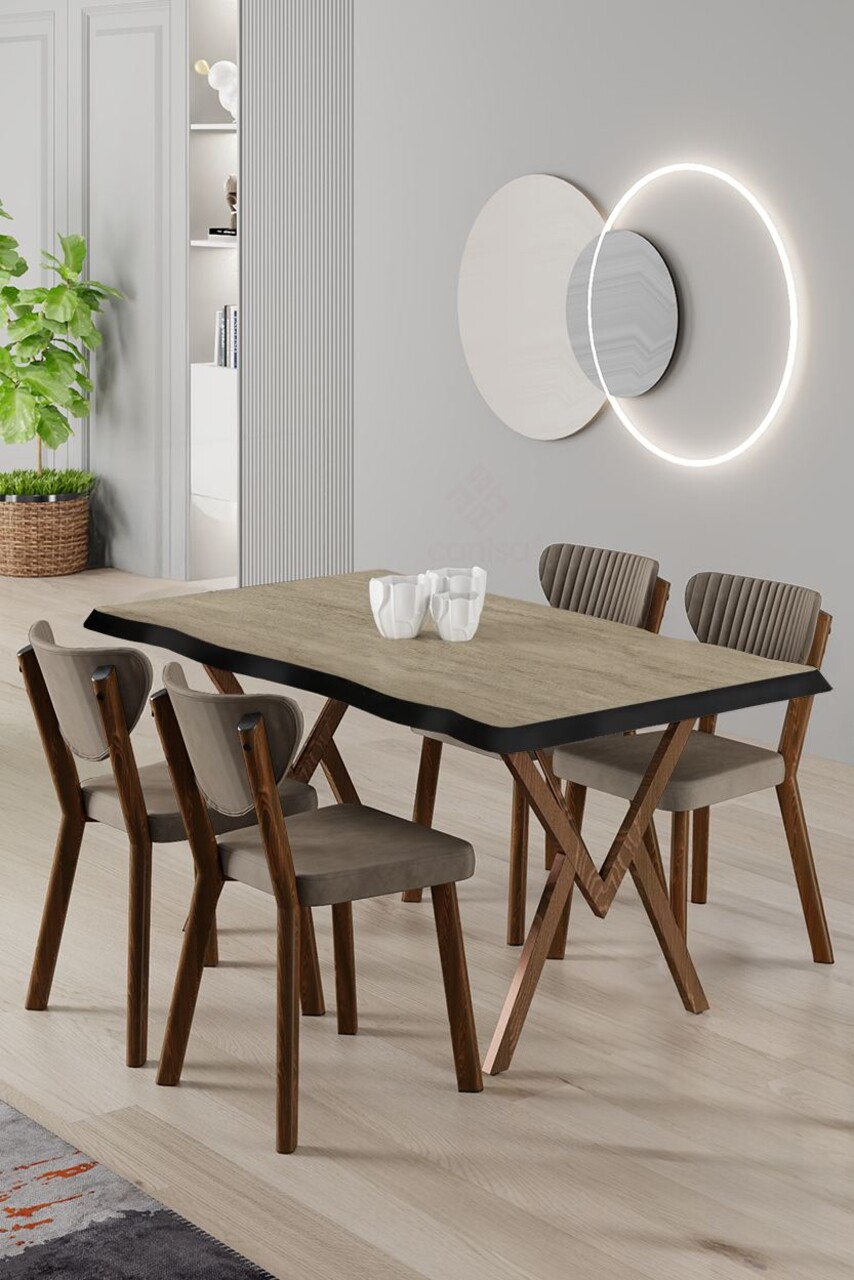 Set masă și scaune (5 bucăți), Hanah Home, Akort, Travertin / Cappuccino