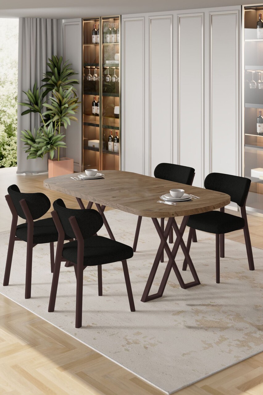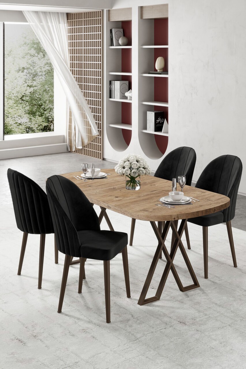 Set masa extensibila si scaune, Hanah Home, Exve, Baroc / antracit