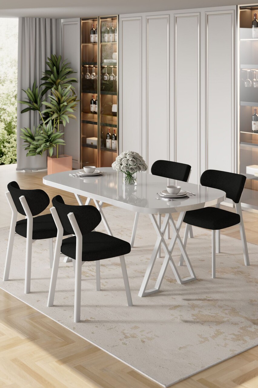 Set masă și scaune (5 bucăți), Hanah Home, Axton, Alb/Negru