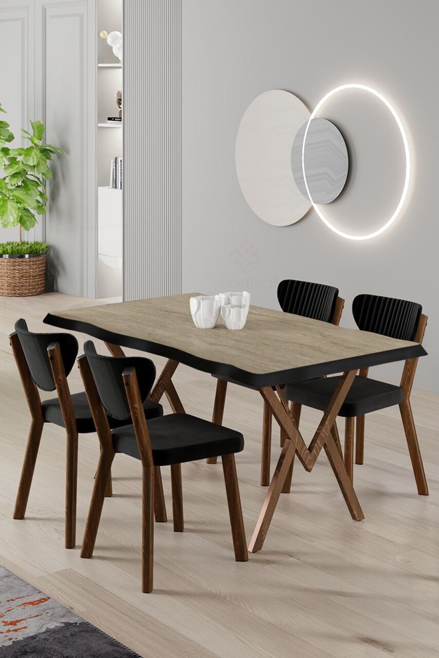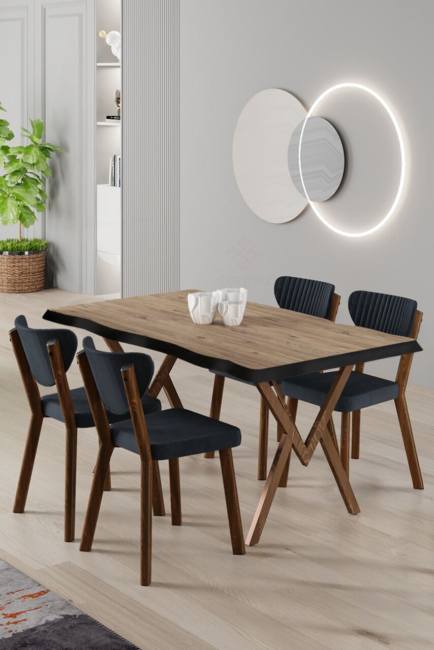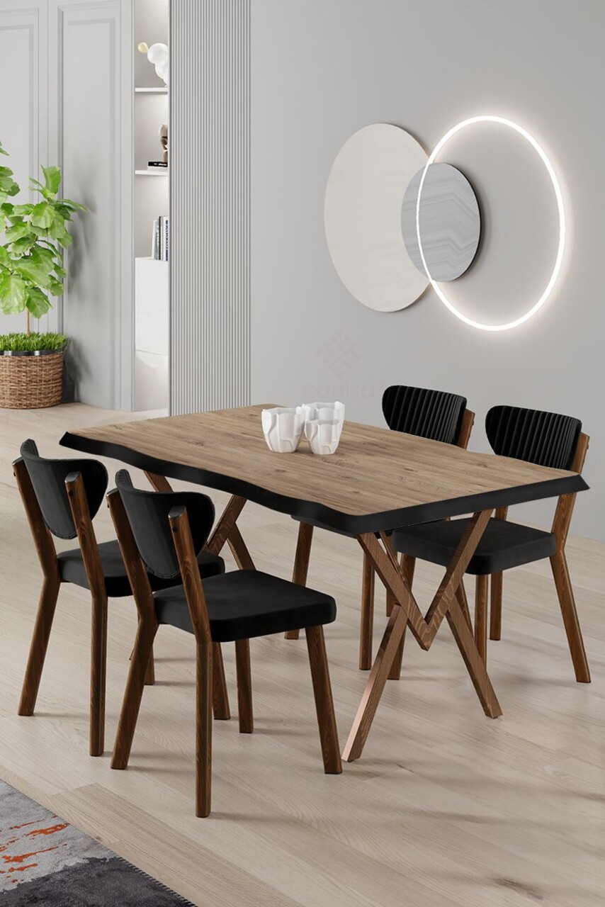Set masă și scaune (5 bucăți), Hanah Home, Akort, Pin Atlantic / Negru