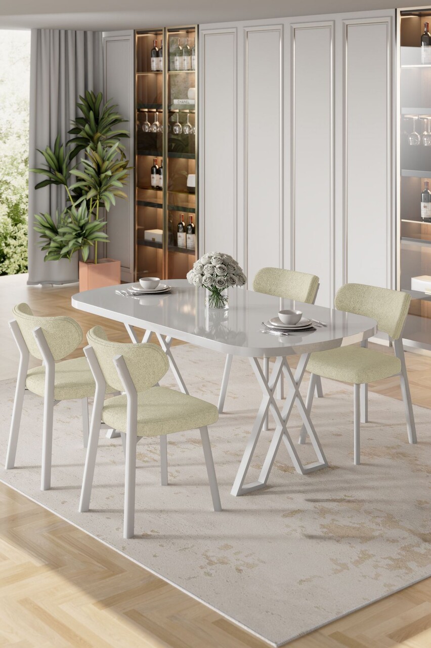 Set masă și scaune (5 bucăți), Hanah Home, Axton, Alb / Crem