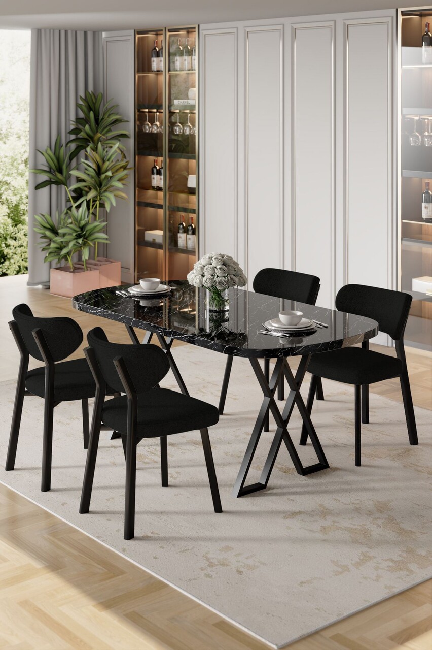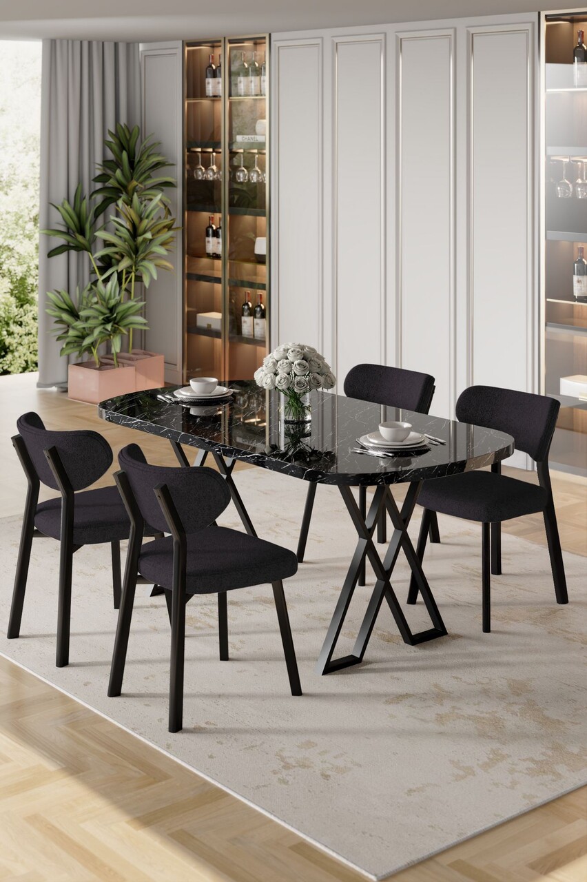 Set masă și scaune (5 bucăți), Hanah Home, Axton, Marmură neagră / Negru