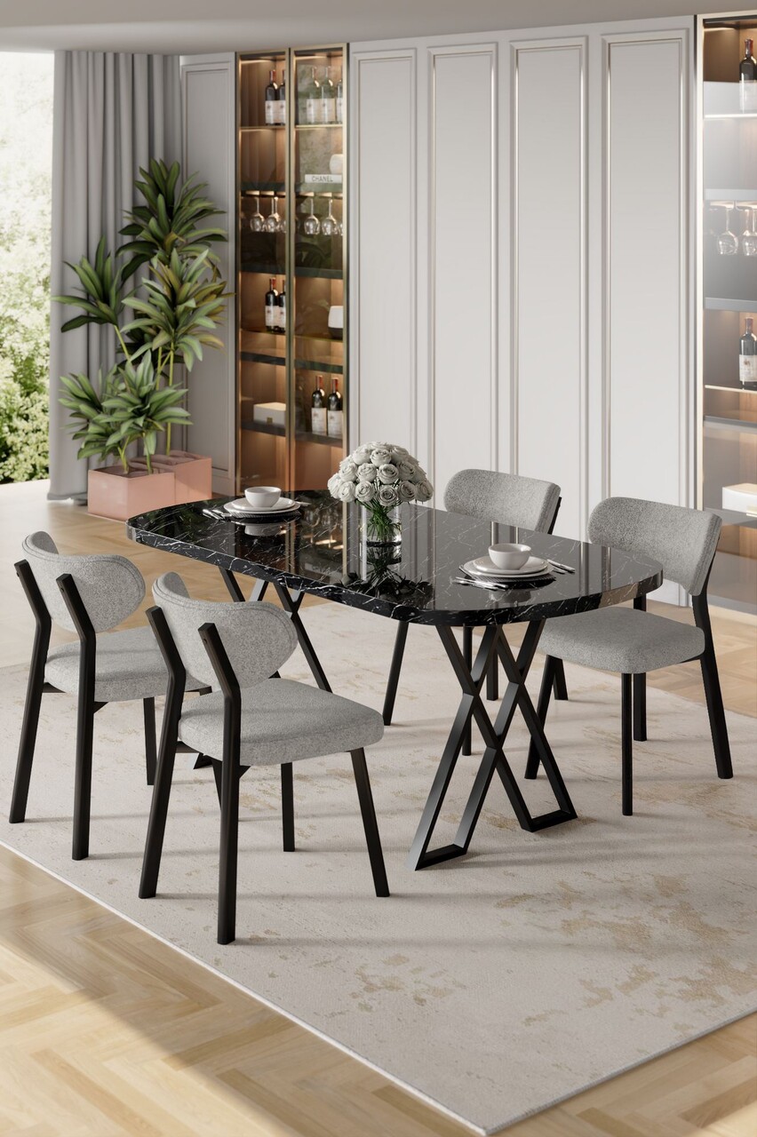 Set masă și scaune (5 bucăți), Hanah Home, Axton, Marmură neagră / Antracit