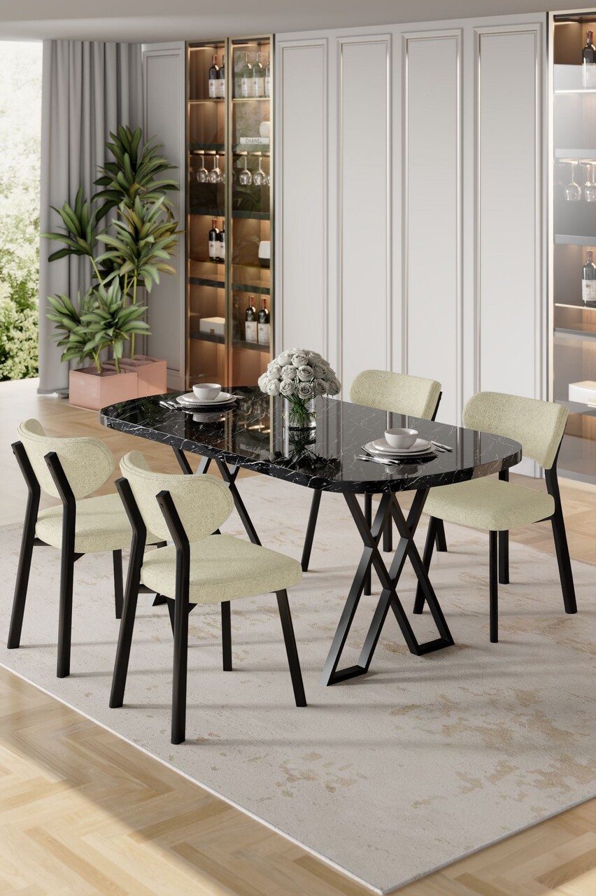 Set masă și scaune (5 bucăți), Hanah Home, Axton, Marmură neagră / Crem