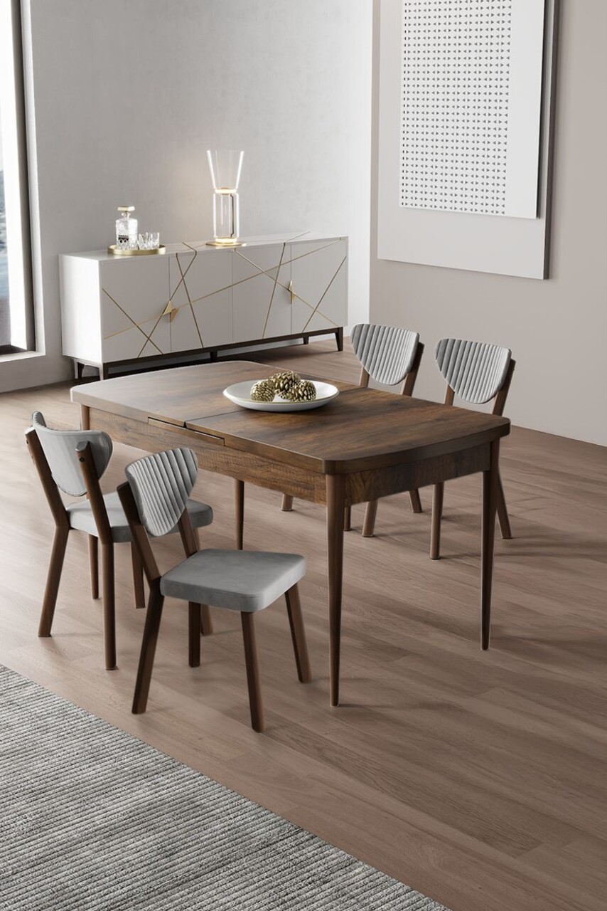 Set masa extensibila si scaune, Hanah Home, Exve, Baroc / Gri