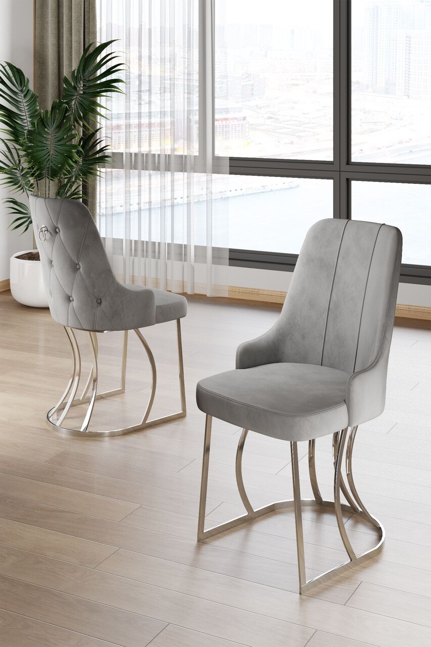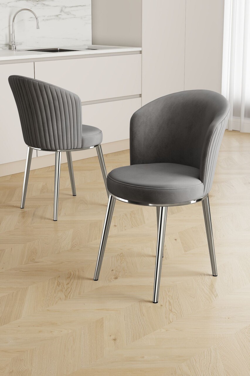 Set scaune 4 piese, Hanah Home, Puva, Gri/Crom