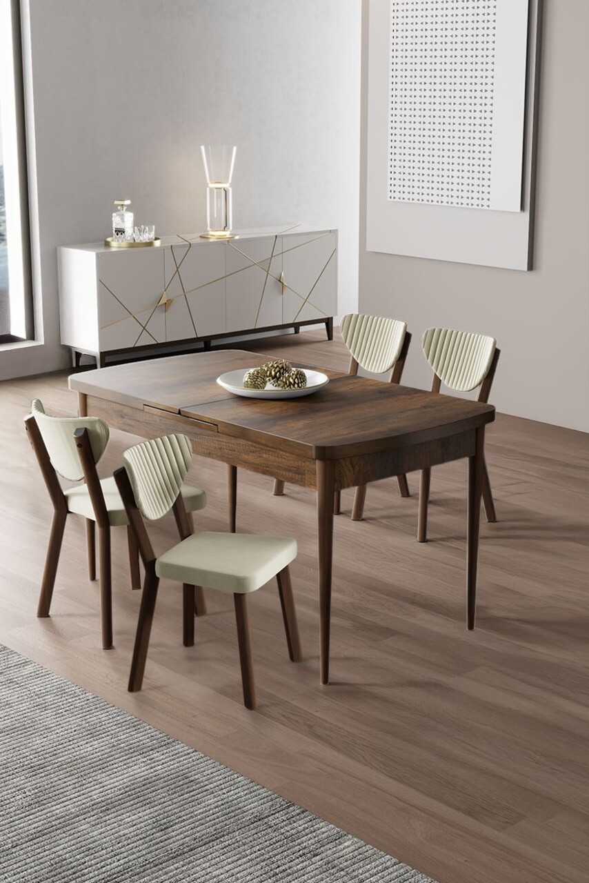 Set masa extensibila si scaune, Hanah Home, Exve, Baroc / Cappuccino