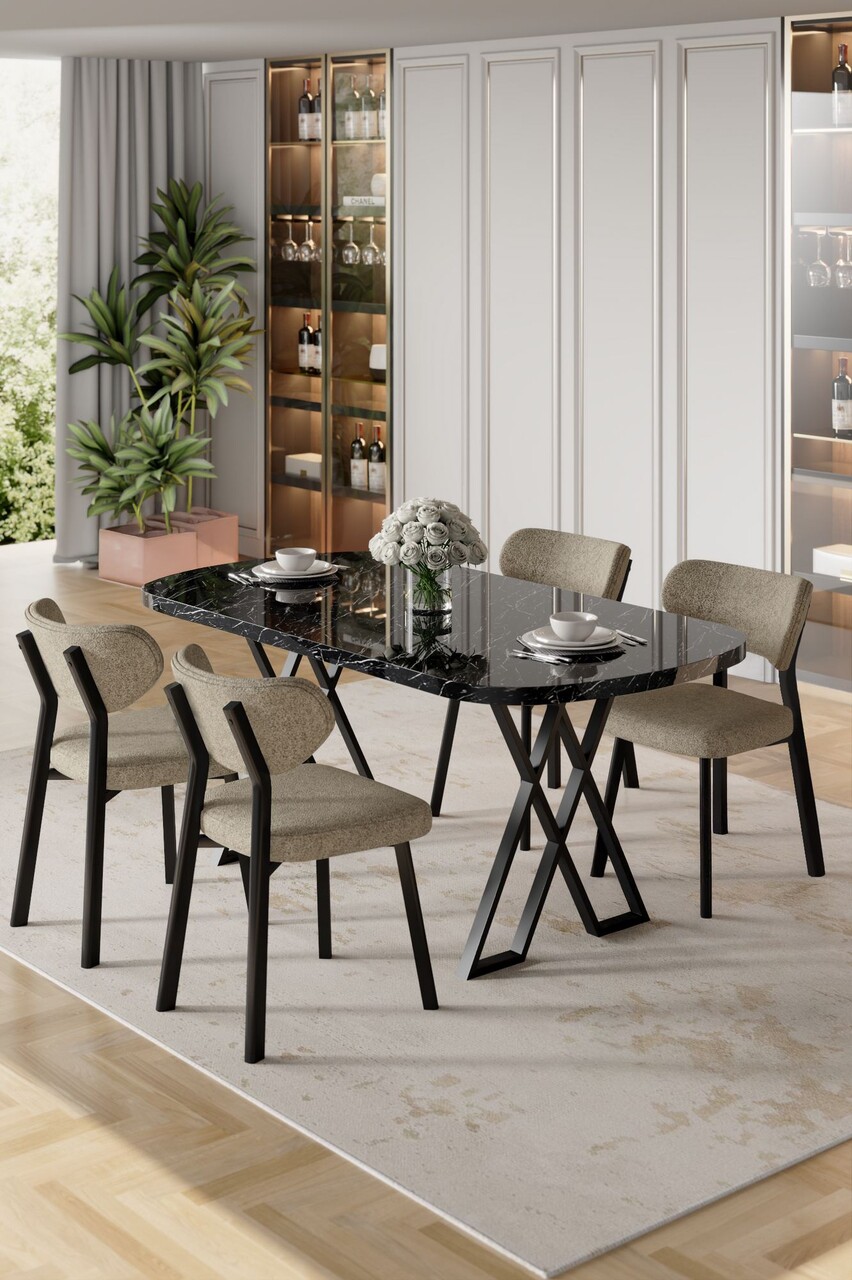 Set masă și scaune (5 bucăți), Hanah Home, Axton, Marmură neagră / Cappuccino