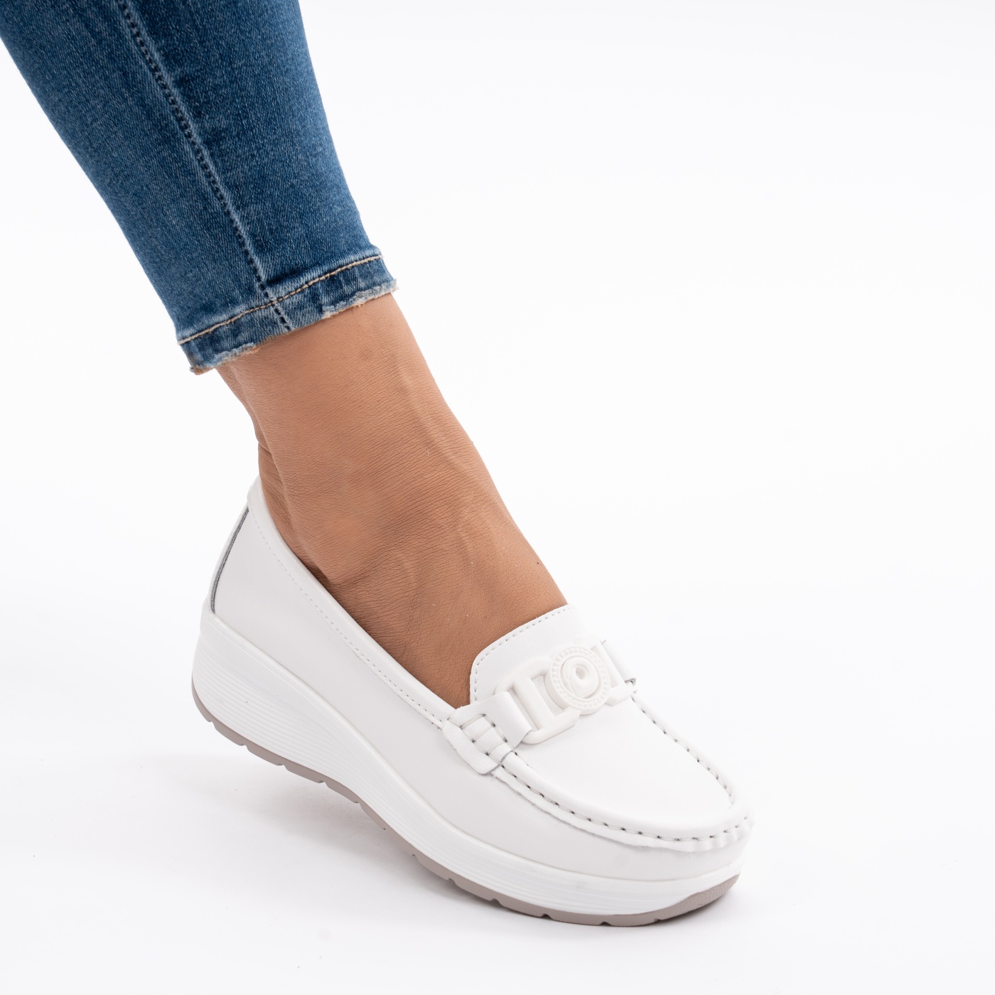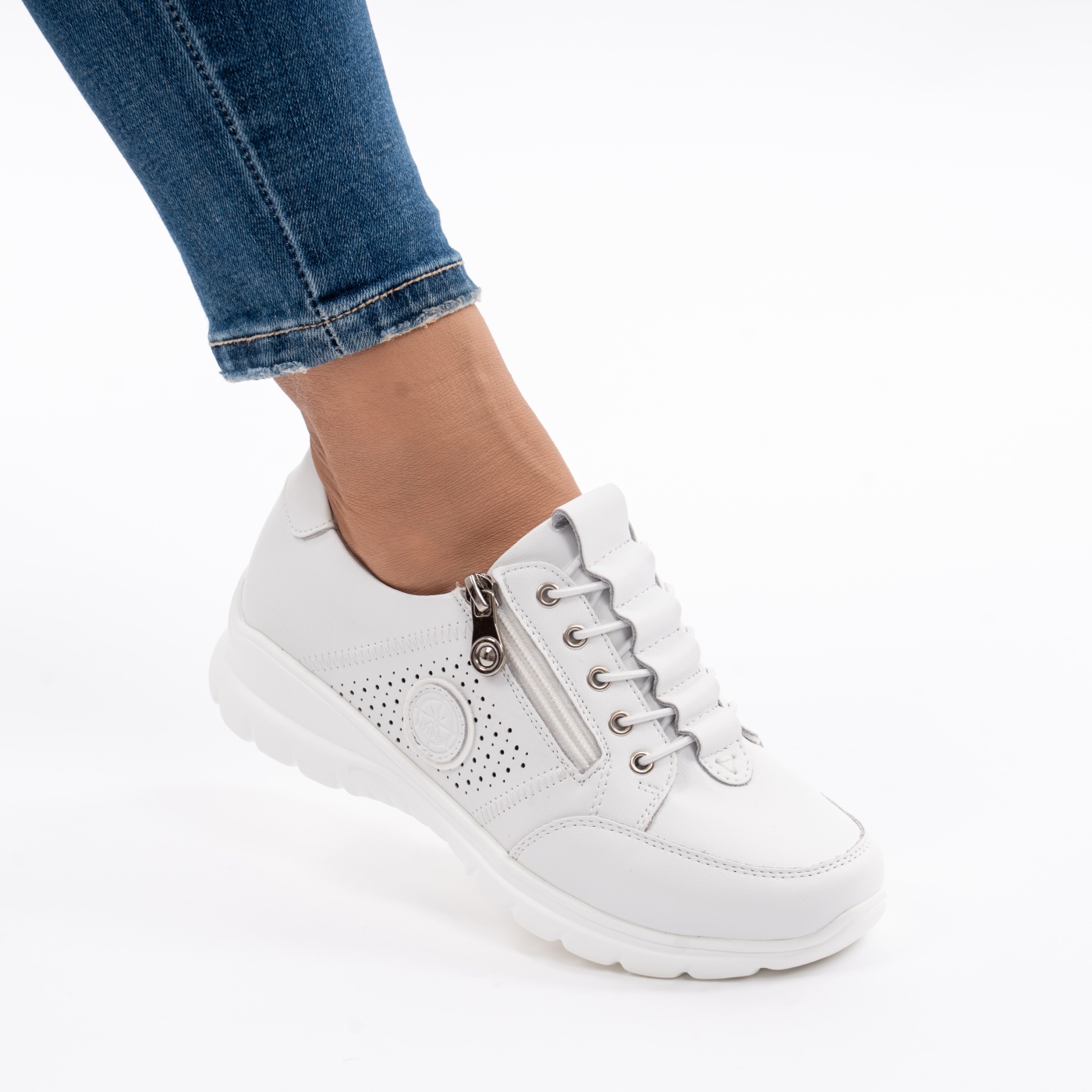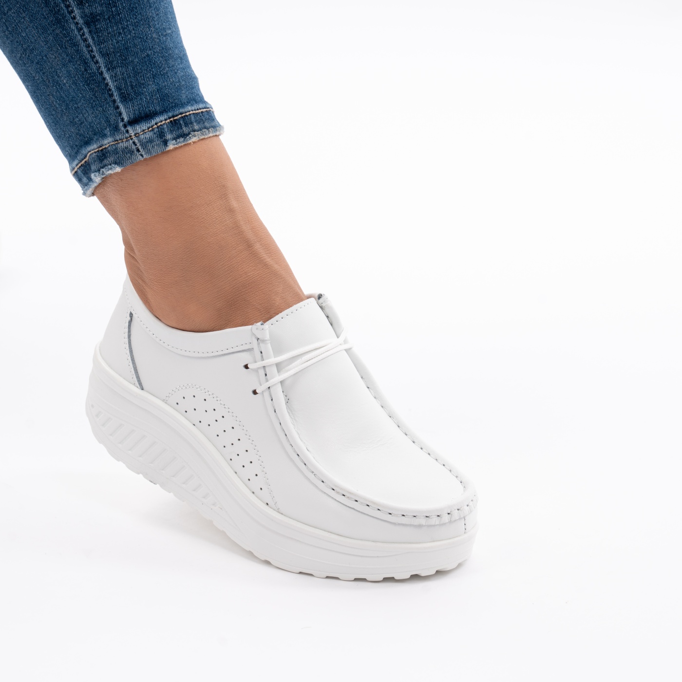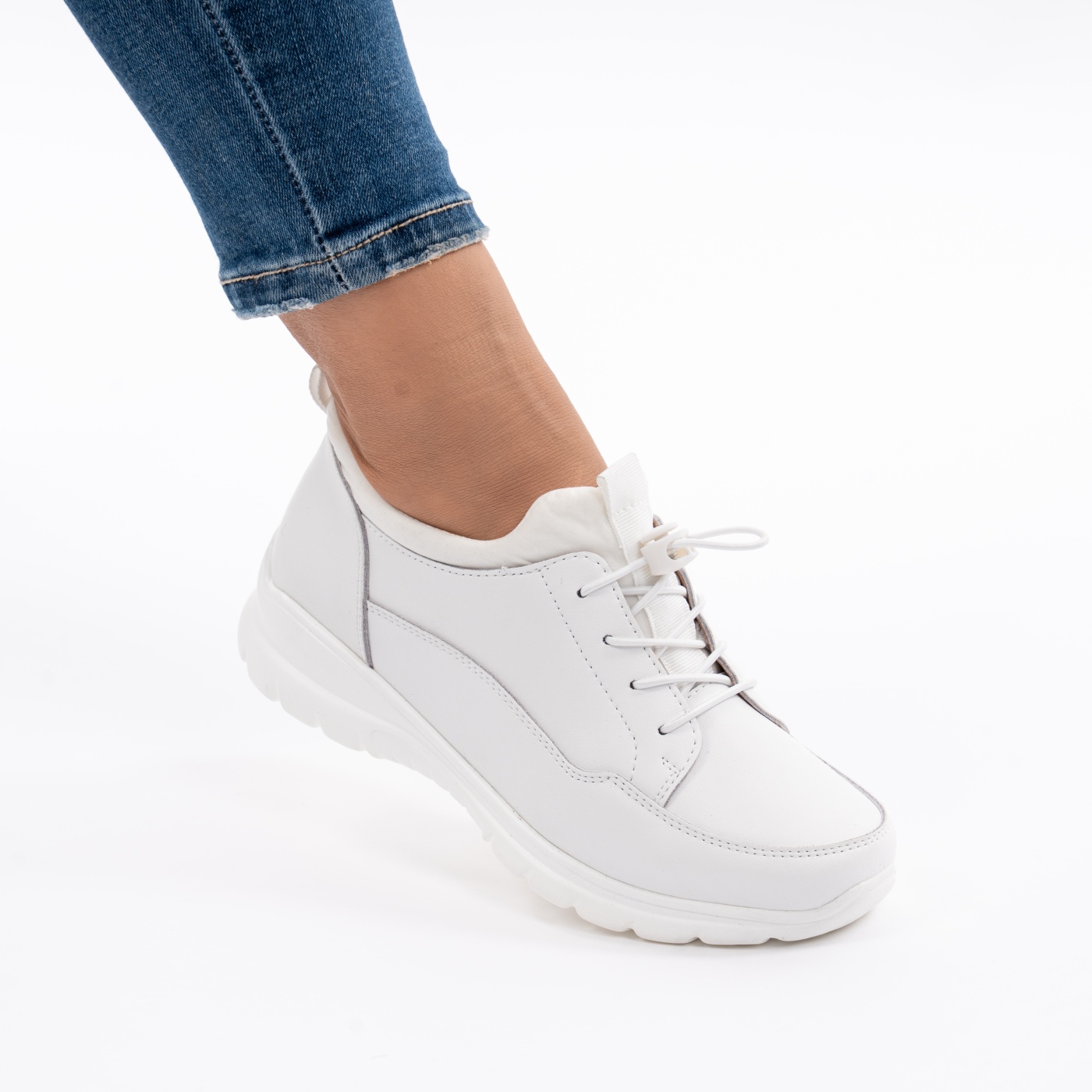 Pantofi albi comozi din piele naturala BY6921-2 03 19682 - Alb