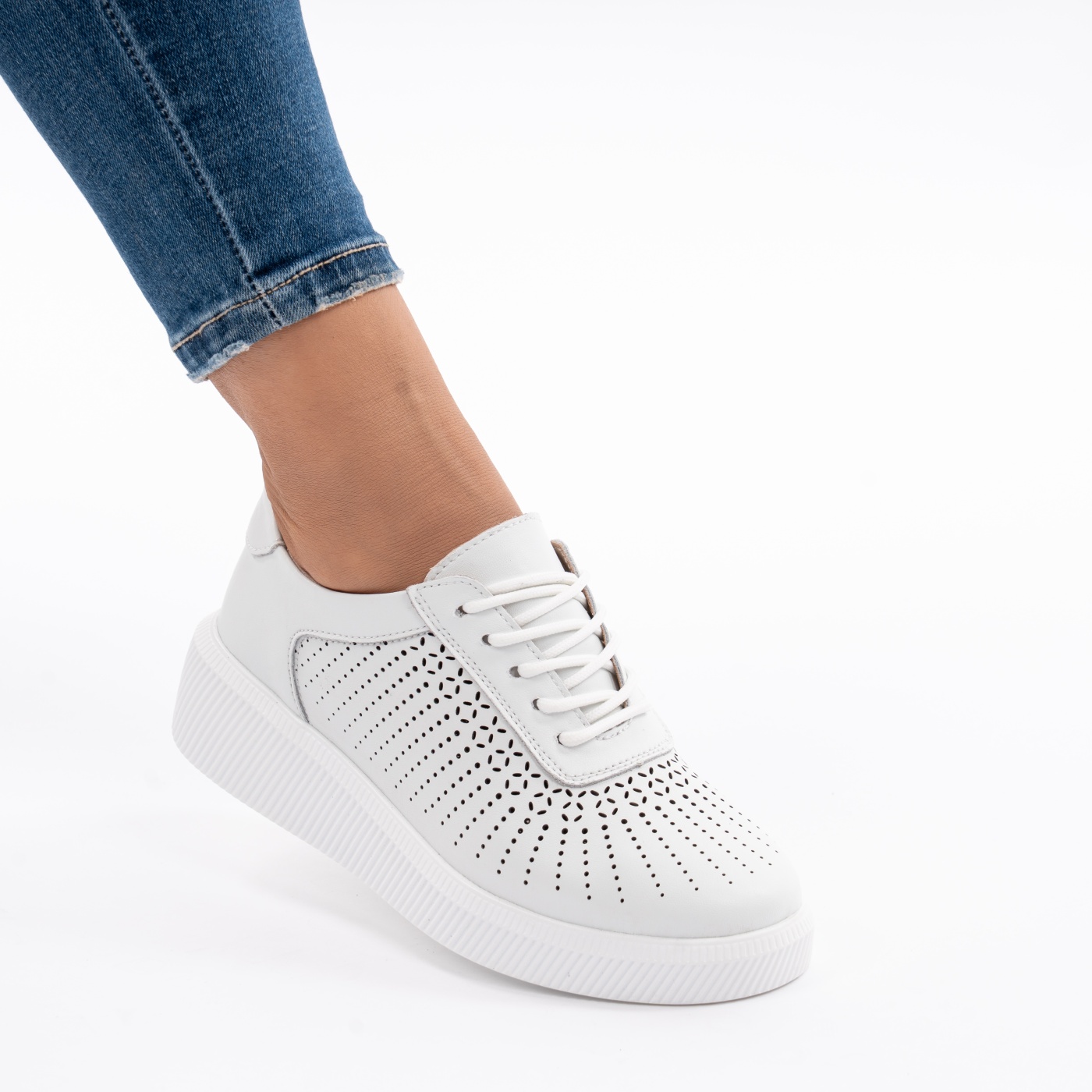 Pantofi albi decupati din piele naturala BY6880-1 02 19708 - Alb